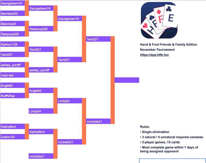 Playing in our tournaments is a great way to meet new people and test your Hand & Foot playing skills. Best of all, it’s free for all players.
